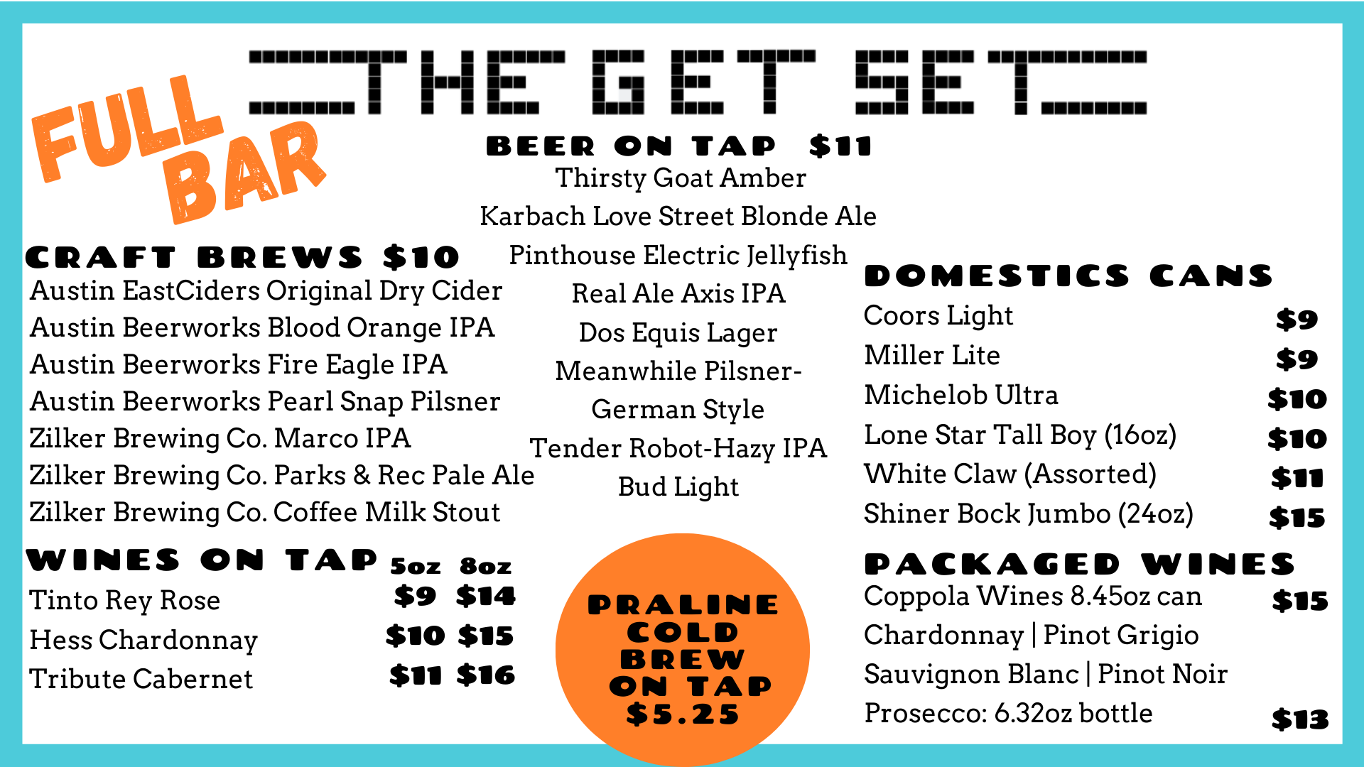 Please visit the bar inside, outside on the patio or our De Nada Taco Truck for the best in local Austin foods and beverages.